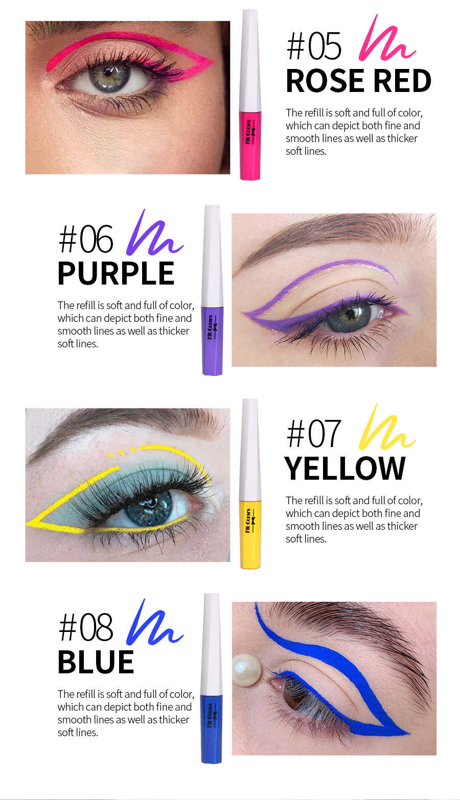 “Rainbow Obey Liner Set” – Neon multi-color eyeliner to mark your eyes like a well-trained doll. Apply every hue as proof you’re mine.